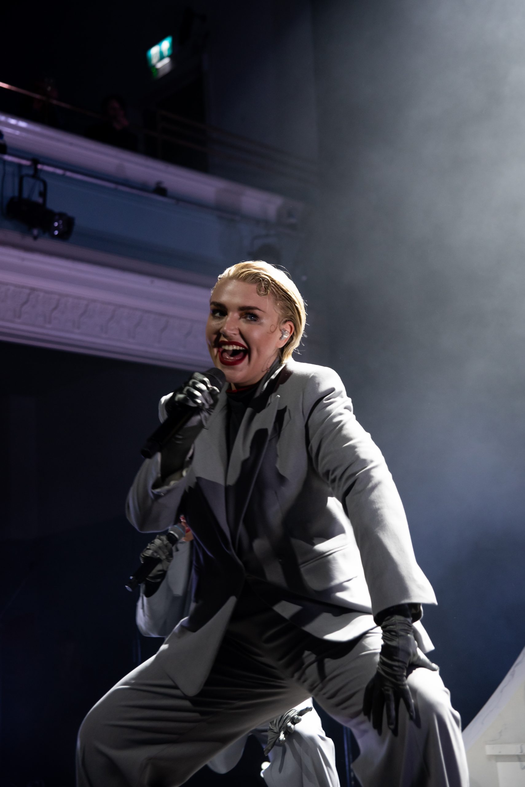 At one point, the show was pared back to just her, standing steady in an authoritative black suit, thick rivulets of make-up streaking her face, and her words. They also performed a beautiful acapella version of ‘The 345’ that had us all singing along and those on the stage hugging and kissing, affection as always a huge part of her work alongside the reckoning of being a woman and living.