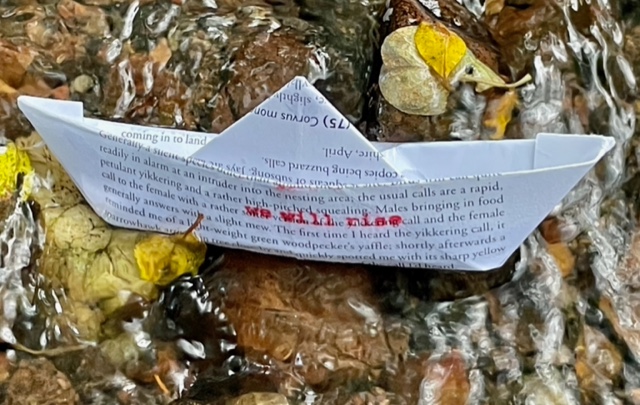 On Thursday 23rd November (the week before COP28 begins), from 9.30am-11.30am, the members are gathering outside the Scottish Parliament for poetry and music, and to deliver 1,000 paper boats made from the pages of second-hand books and magazines, along with 1,000 Climate Hopes (short messages with aspirations for the future) to MSPs of all parties urging them to support rapid and urgent action in the face of accelerating climate breakdown.’