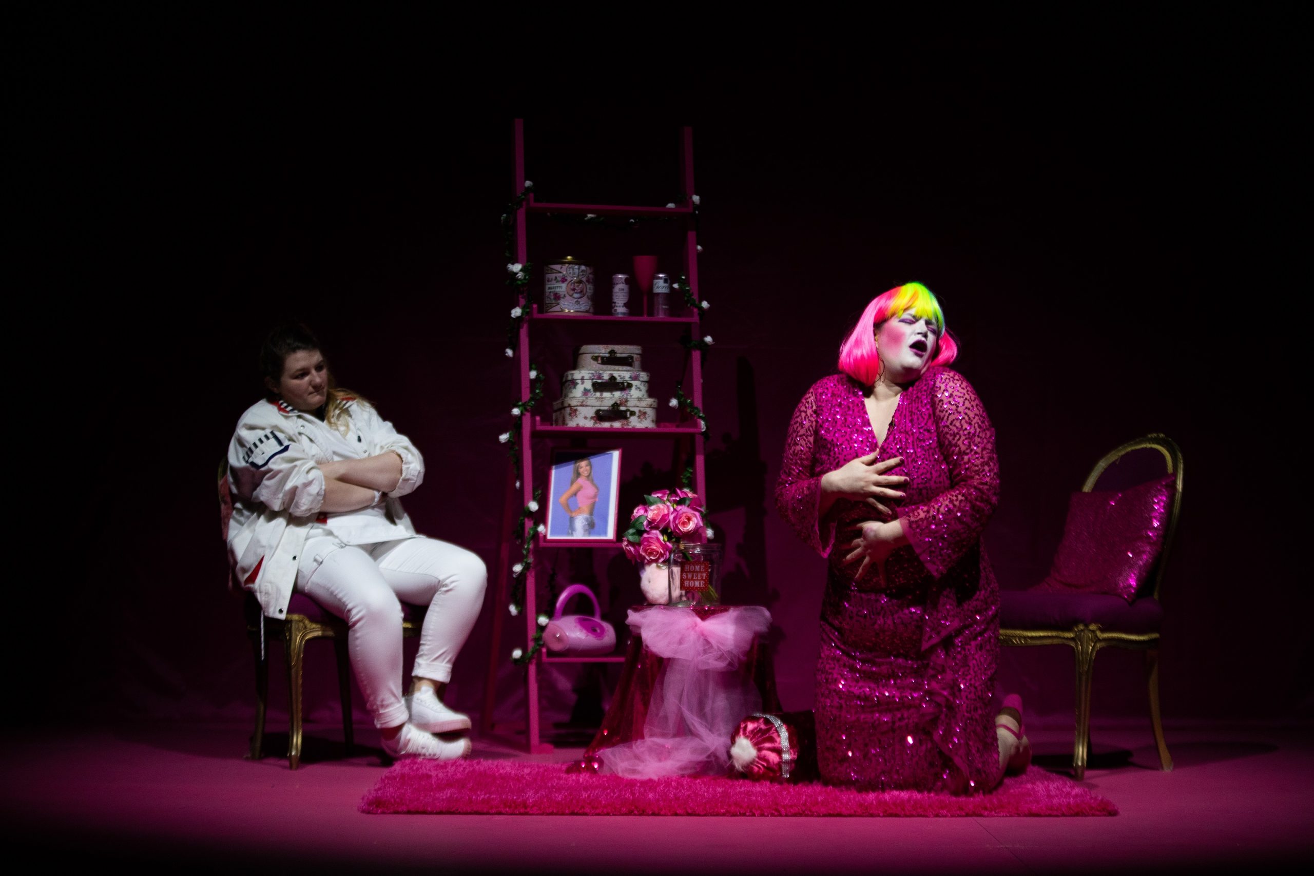 Holly Worton’s ‘6687’ piece conversely explores communication between friends, in a collaboration with Sam Worton. Beginning by assembling two trampolines, Holly and Sam exhaustively bounce through musical interludes and dialogue to deconstruct their relationship and shifting dynamics over the years. The transition from child to adult can encourage further internalisation of thought, and Holly cleverly utilises physical exhaustion to interrogate why we regress in conversation as we get older.