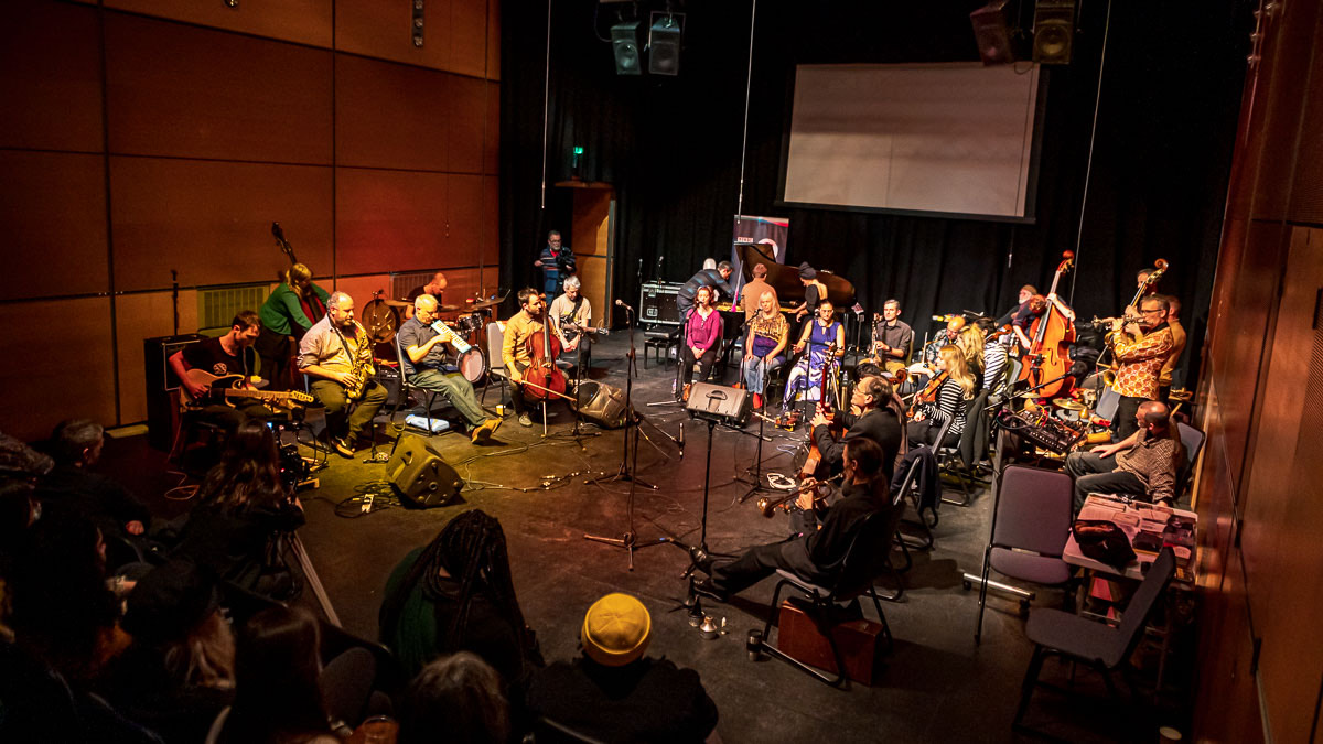 Nearly thirty musicians share the stage by the end of the night, each contributing to an ecstatic swirl of sounds that uplifts and laughs, that teeters on the edge of chaos and swells with heart. If experimental music can sometimes be a little cold, then this festival – and this group of musicians – are the antithesis; a communal creative experience of unconstrained delight.
